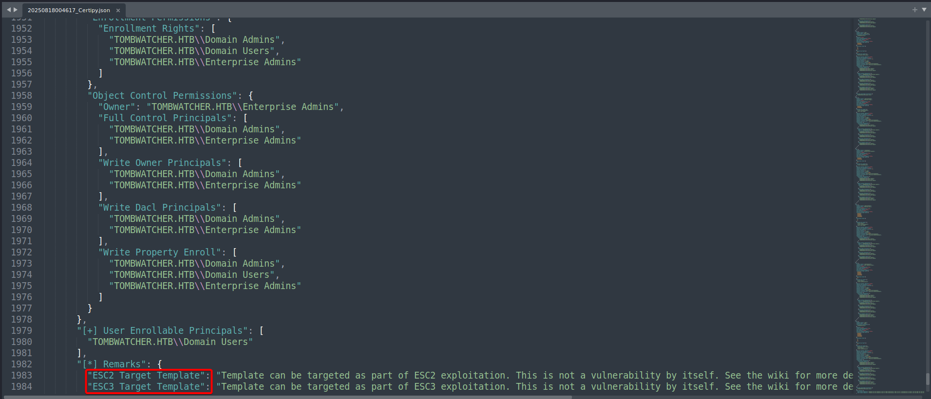 SMB 10.10.11.72 445 DC01 1110: TOMBWATCHER\cert_admin (SidTypeUser)