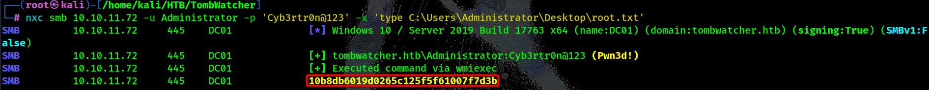 LDAP 10.10.11.72 389 DC01 [*] Windows 10 / Server 2019 Build 17763 (name:DC01) (domain:tombwatcher.htb)