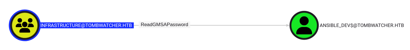 INFRASTRUCTURE has ReadGMSAPassword on ANSIBLE_DEV$ (GMSA).